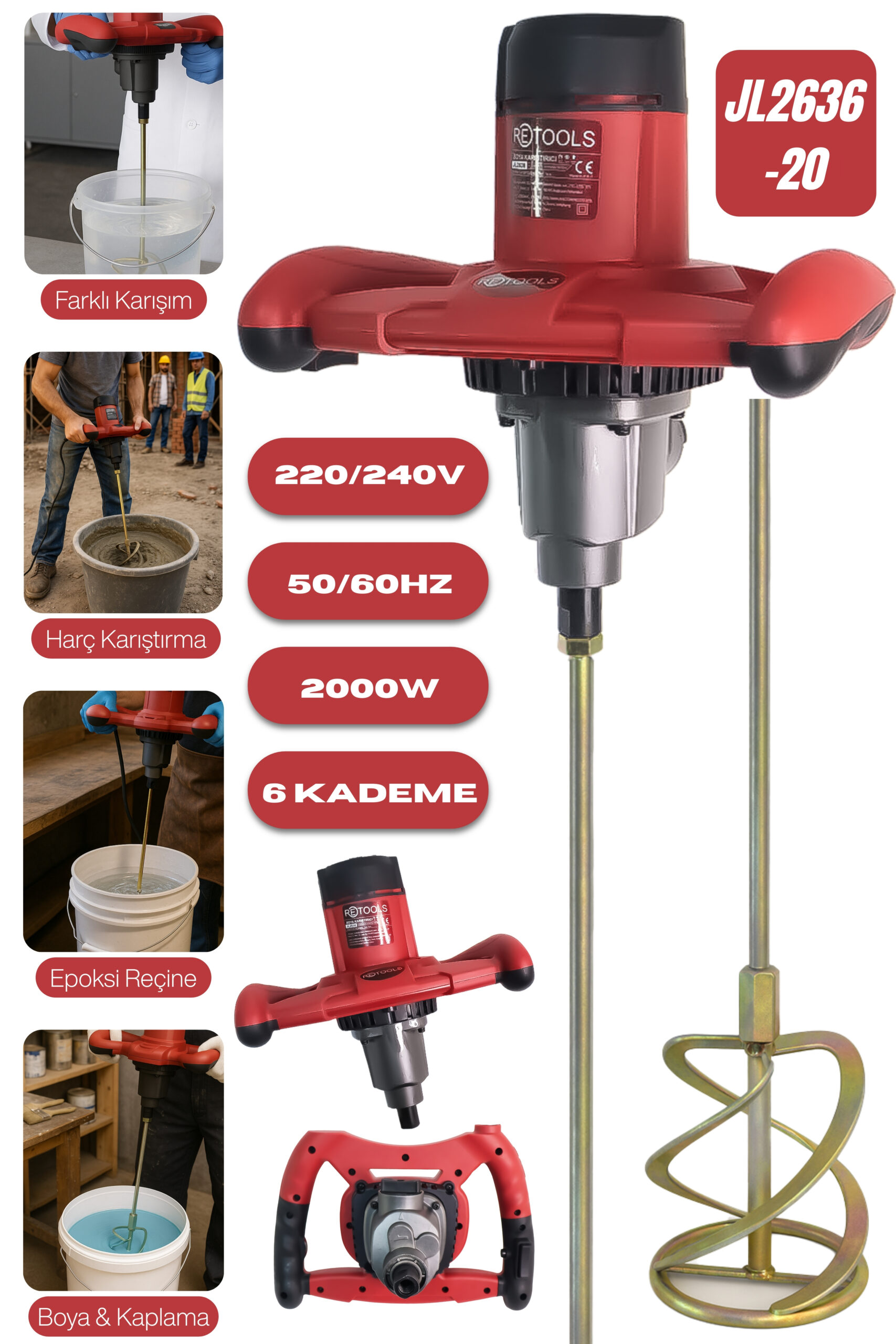 RETOOLS KIRMIZI KABARTMALI 2000W BOYA&HARÇ KARIŞTIRICI