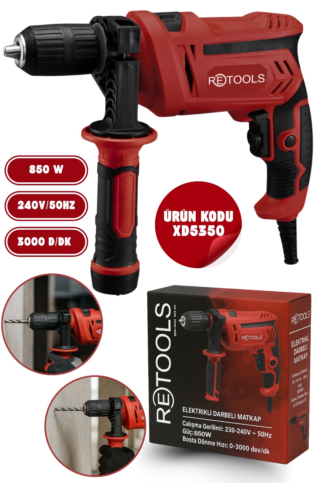 RETOOLS XD5350 850W Elektrikli Darbeli Matkap